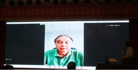 王列耀副校长通过视频会议做重要讲话。王列耀副校长回顾了传播与传媒学院办学历程,充分肯定了重点学科建设以来传院所取得的成绩,对为传院发展付出辛勤努力和汗水的学院领导和教职工表示真挚的感谢,勉励传院领导和教职工在今后的学科建设和教育教学工作中,找差距,补短板,以更大的热情投入到工作当中,为学校发展和学科发展添砖加瓦。