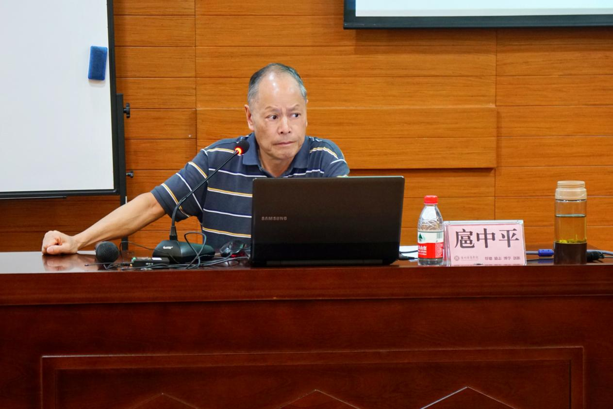 教师教育学院荣誉院长扈中平教授以“高校新任教师课堂教学能力提升路径”为主题,开启专题培训环节的第一堂课。他与新入职教师共同探讨对教学的认识,结合自身丰富的教学经验,就新任教师如何提升自己的课堂教学能力提出建议:一是自我分析和初步定位;二是充分备课;三是苦练教学基本功;四是增强课堂驾驭能力;五是赋予课堂教学一定的艺术性;六是提高自己的学术水平和科研能力;七是扩大自己的知识面;八是将所教内容尽量内化。