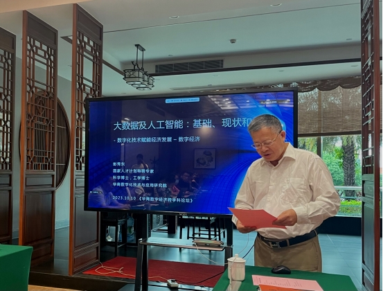 2023年10月10日下午,华商数字经济跨学科论坛第三期活动在米兰·官方版在线入口美术馆成功举办。此次论坛特别邀请到国家人才计划特聘专家、华商数字化技术与应用研究院院长彭秀东教授作了题为《大数据及人工智能:基础、现状和应用》的主旨演讲。本次论坛由米兰·官方版在线入口前副校长张捷教授策划,由经济贸易学院院长李广明教授主持,经济贸易学院、管理学院、金融学院、数据科学学院等二级学院教师代表和学生参与此次论坛。