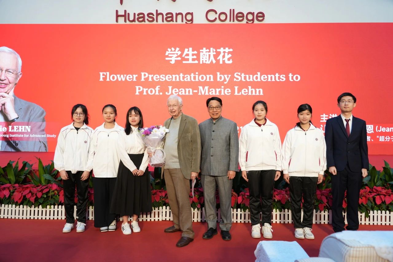 讲座伊始,陈新滋院士致欢迎辞,并代表学校隆重欢迎Lehn教授回家。陈院士指出,作为超分子化学的奠基人和世界顶级的化学家,Lehn教授此次为师生带来最前沿的学术思想和科研方法,有助于拓宽学术视野、找准科研方向,对我校大健康体系构建及产教融合等领域深入开展跨学科交叉研究具有重要指导意义。Lehn教授到访是华商教育事业发展进程中的一个重大机遇,是一种国际智慧与本土教育的深度融合,象征着华商积极在全球化的浪潮中不断汲取养分、茁壮成长。期待学校与Lehn教授建立更为紧密的合作关系,进一步提升学校科研实力和成果转化效率,为区域经济社会发展培养更多具有全球竞争力的创新型人才。