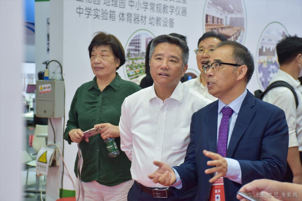 开幕仪式结束后,领导、嘉宾进入展馆,前往各参展企业、学校展位观摩,查看参展品牌、展品,进行深入交流,了解各企业的亮点产品、民办学校高质量发展最新成果。