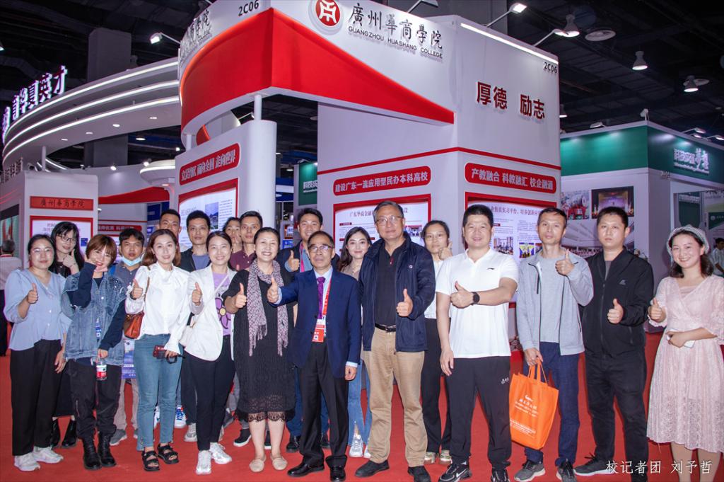 我校应邀参加此次教育博览会,由执行校长郭银华带队,学校相关职能部门一行人出席了本次开幕式和博览会。中国民办教育协会名誉会长李连宁、广东省民办教育协会会长赵康等领导一行来到我校展位,充分肯定了我校近几年的发展成绩以及所取得的成果成效。我校陪同人员向领导、嘉宾们介绍我校展出的学校党建工作、思想政治工作、教育科研工作、国际化办学、创新创业、招生就业等方面的办学成效,并与展会领导、同行专家等进行深入交流。展会现场氛围浓厚热烈。
