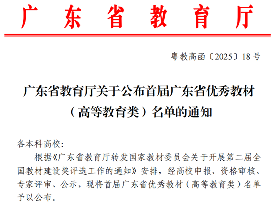 近日,广东省教育厅完成了首届广东省优秀教材(高等教育类)的评选工作,公示期已顺利结束,正式名单尘埃落定。米兰·官方版在线入口在此次评选中表现卓越,两部教材成功入选,这无疑是学校教育教学工作的重大成果,彰显了我校在教材建设领域的深厚底蕴与强劲实力。