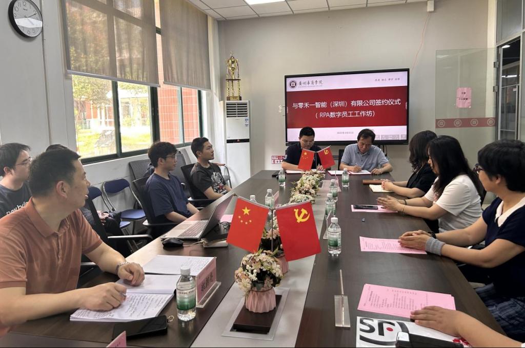 签约仪式落成后,陈蒙梦老师以结果为导向,围绕人才培养合作与零禾一智能(深圳)有限公司总经理杨振展开深度探讨。陈老师提出,希望企业可以切实带学生做项目,指导学生参与创新创业比赛、互联网+大赛等,让学生有机会参访数字化企业,给学生视觉上的冲击,以吸引更多学生加入到数字员工工作坊。