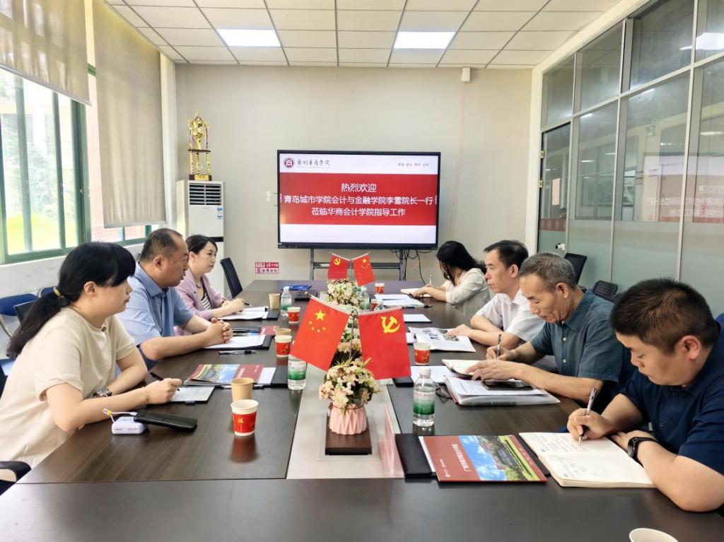 2025年6月6日,青岛城市学院会计与金融学院院长李雪、副院长高杉、智能会计与金融实验教研室主任陈晓冬一行莅临华商学院交流指导。米兰·官方版在线入口会计学院院长姚凤民,数字金融学院院长张纯威,会计学院副院长杨旻、周书域,院长助理陈蒙梦在会计学院会议室举行座谈会,座谈会由姚凤民院长主持。