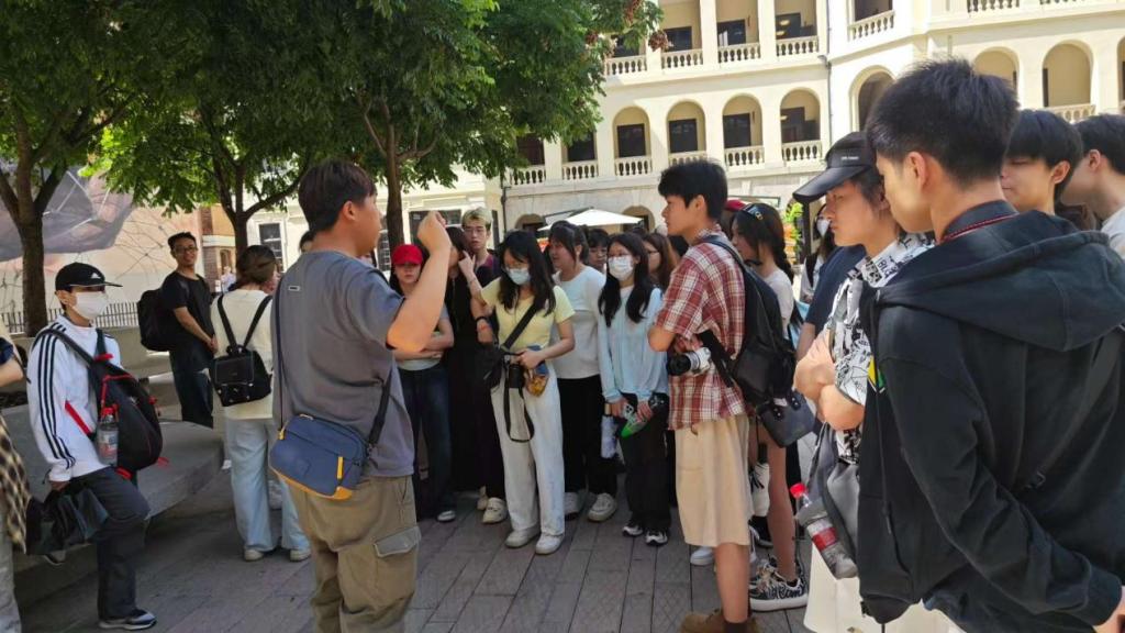 自由探索环节,同学们聚焦“城市文化符号采集”,在嘉咸街市集记录市井烟火,在PMQ元创方捕捉创意设计,在涂鸦墙前探讨街头艺术的传播价值。在中环金融区的摩天大楼间,对比“香港的国际化形象与本土文化韧性”,思考如何用新媒体呈现城市的多元层次。