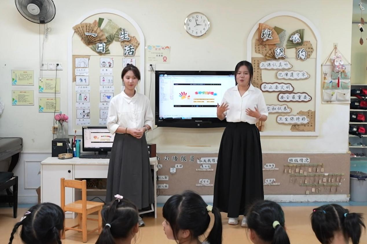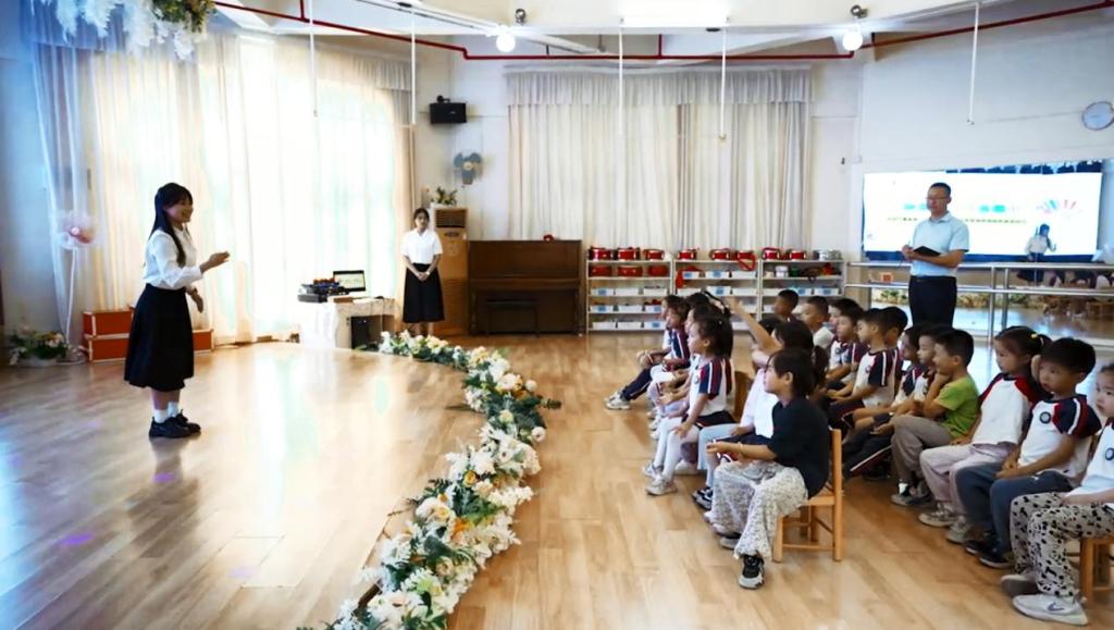 2025年5月27日下午,在教师教育学院周剑铭老师的带领下,教师教育学院“数字绘本工作坊”的5位同学走进东莞市创思东骏幼儿园,开展数字绘本实践教学活动。