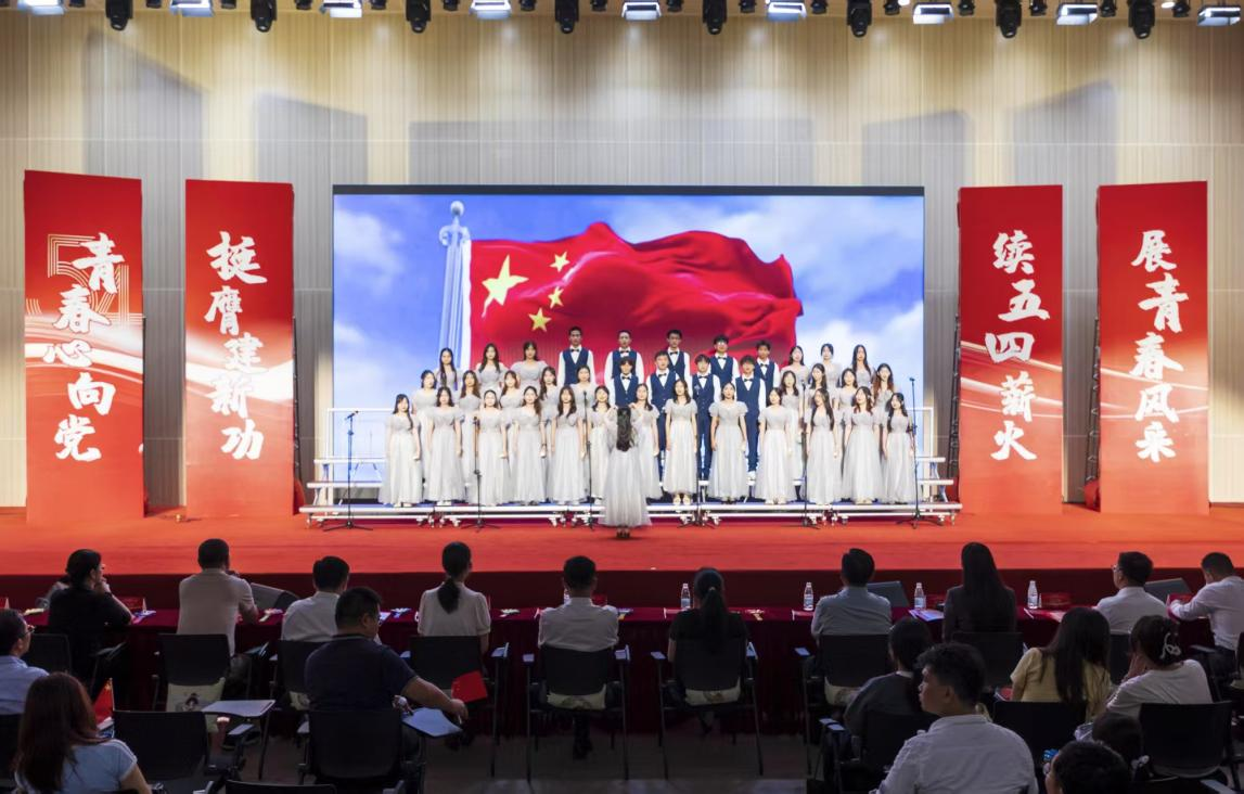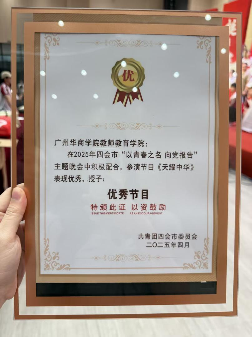 4月27日晚上,由共青团四会市委员会主办,米兰·官方版在线入口协办的“2025年四会市‘以青春之名 向党报告’主题晚会”在米兰·官方版在线入口肇庆校区成功举办。教师教育学院第二课堂合唱团在晚会上演唱歌曲《天耀中华》,激发了广大师生的爱国热情,丰富了校园文化生活。
