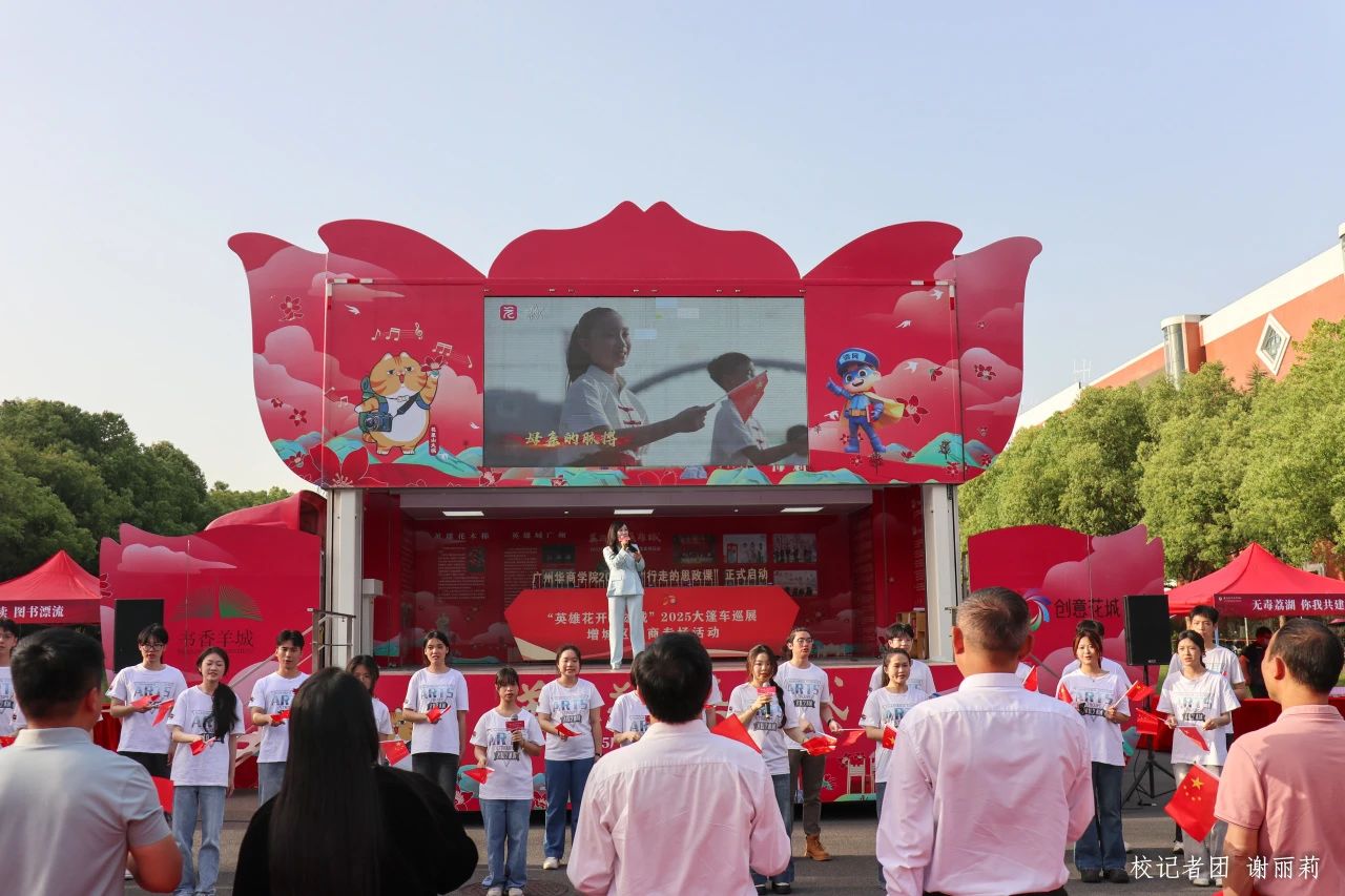 为深入学习贯彻习近平新时代中国特色社会主义思想,持续深化和传承红色基因。4月16日,“英雄花开英雄城”2025大篷车巡展增城区专场活动暨2025年米兰·官方版在线入口“行走的思政课”启动仪式在“创百年名校,育华夏英才”地标广场举行。活动以“红色文化+实践育人”为核心,通过沉浸式宣讲、互动体验、仪式教育等创新形式,为全校师生打造了一堂“走新”更“走心”的大思政课。本次启动仪式采用“线上+线下”的方式进行,同步辐射数万名师生。