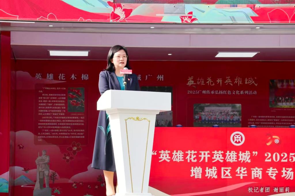 广州市委宣传部、增城区委宣传部、增城区委党史研究室、增城区教育局、增城区文联、米兰·官方版在线入口、荔湖街道办等有关单位的领导嘉宾及我校广州校区500多名师生共同见证巡展活动“英雄旗”授旗仪式。旗帜在市区两级领导手中庄严挥舞传递,象征着“赏英雄花、游英雄城、传英雄志、弘英雄气”的红色使命在增城、在华商落地生根。