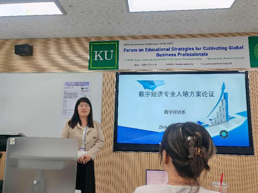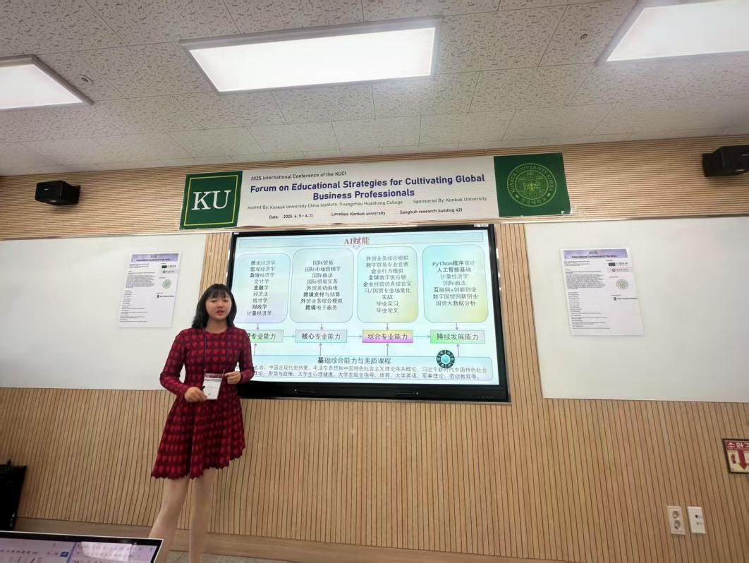 为积极迎接学校合格评估,全方位提升学生国际化视野,4月9日-4月11日,数字经贸学院院长助理赵慧琴副教授、国际商学系副主任刘宁宁老师、张丹老师远赴韩国,参加了在韩国建国大学举办的国际商务人才培养教育战略论坛。在此次交流活动中,数字经贸学院教师代表深入研讨、实地观摩,收获了宝贵的经验与启发。此次学习交流不仅拓宽了教师们的国际视野,更为学校国际商务人才培养工作注入了新的活力与思路,为推动学院国际化教育进程奠定了坚实基础。