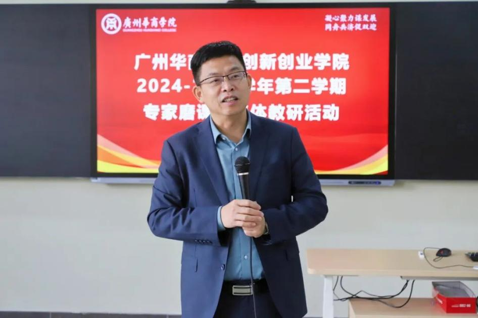 活动伊始,创新创业学院宋元跃副院长向参加本次教研活动的专家、领导、老师表示热烈的欢迎和衷心的感谢。他指出,磨课活动是迎接本科教学工作合格评估的重要举措。学院高度重视集体磨课活动,精心设计,规范流程,强化组织实施。通过专家磨课、集体备课等教研活动持续优化教学方案,逐步打造“理论+实践+案例”的特色教学模式。希望全体教师严格对标《本科教学工作合格评估指标》,不断完善教学大纲与课件设计,确保课程内容与人才培养目标精准对接,不断将创新创业精神、职业素养教育渗透到教学各环节;以“迎评促建”为契机,以“精益求精”的态度打磨每一堂课,为学校高质量通过评估贡献力量。