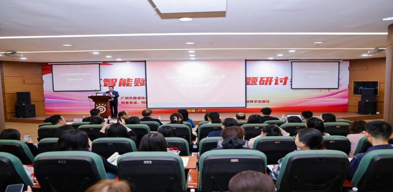 (曾用强教授作题为“AI时代外语教学观念的转变:从文本教学到任务实践”的主旨发言)