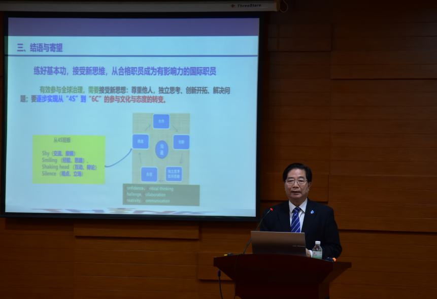 何昌垂院士从历史和当前国际形势角度出发,分析联合国等国际组织的发展和变革需求,并深入分析了这些局势变革、经济发展、科技进步对世界和中国的影响,进而提出国际组织构建的领域和范围以及当下人才需求存在较大缺口的现实。