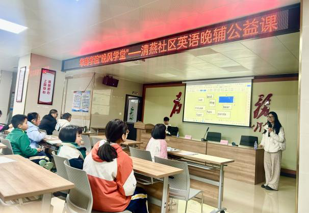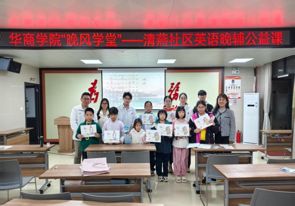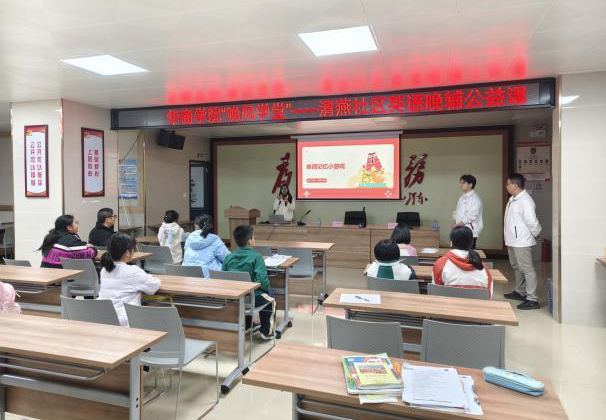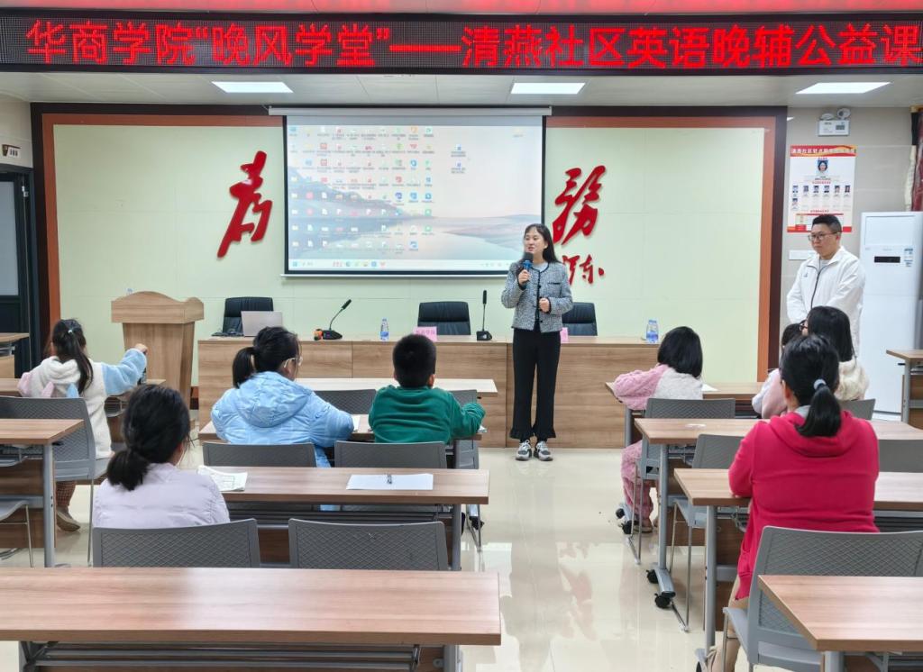 当晚,增城区清燕社区服务站灯火通明,由米兰·官方版在线入口外国语学院发起的“晚风学堂——华商校社英语晚辅公益项目”首场活动正式启动。清燕社区居委会书记邓镜波同志、外国语学院项目负责人郭宇洁老师及志愿者们共同参与,为社区青少年带来了一场别开生面的英语学习体验。