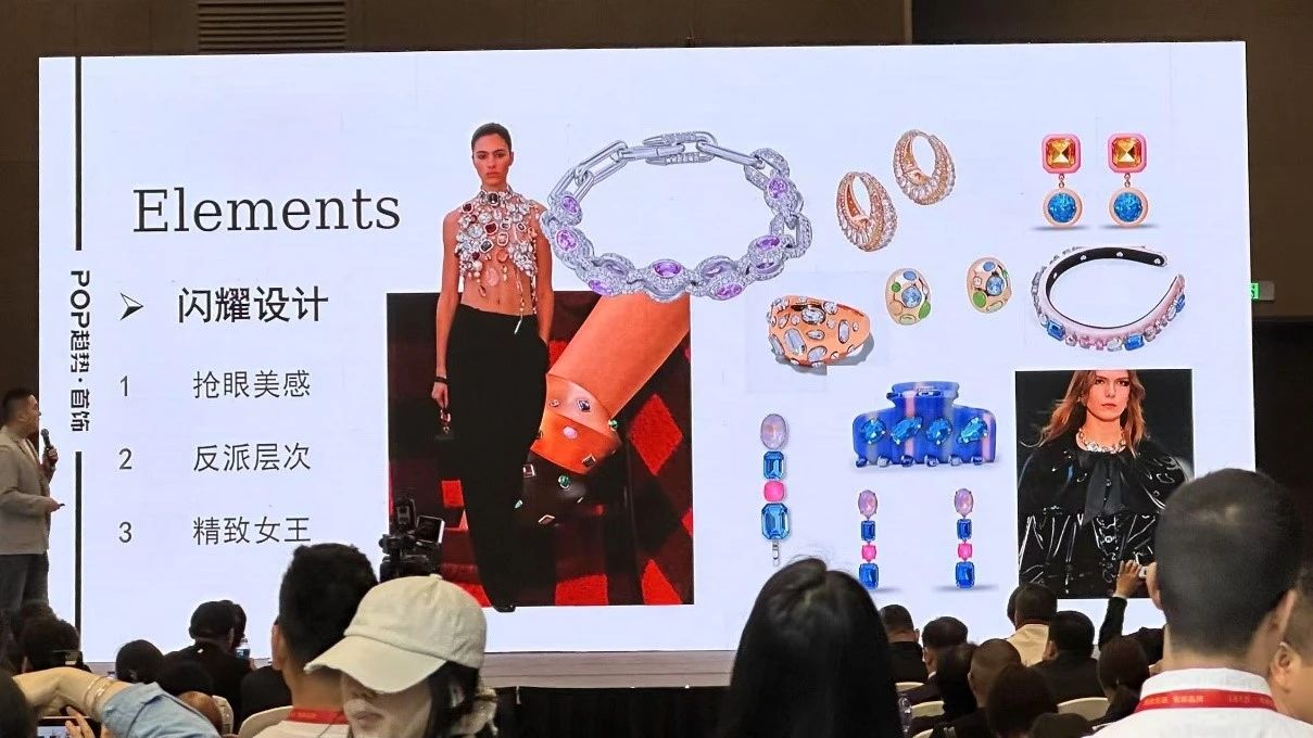 踏入展会现场,师生们仿佛步入一个绚丽多彩的时尚奇幻空间。参展商依据11个品类有序布局,各自绽放独特魅力。国潮新中式风格的饰品尽显典雅古韵,设计师重工打造的作品展现精湛工艺;时尚珍珠款散发优雅气质,莫桑与培育彩宝豪镶款尽显奢华璀璨。