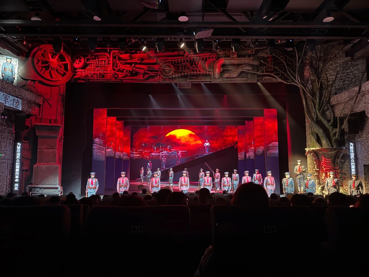 访问期间,曾院长一行在我校党委副书记、纪委书记、副校长吕峻闽及相关职能部门人员的陪同下,前往黄埔军校观看大型红色舞台剧《黄埔 黄埔》。这部剧以生动的表演,再现了那个战火纷飞的年代,黄埔军校的英雄儿女们为国家和民族的独立、解放而英勇奋斗的历史画卷,深深触动了每一位在场者的心灵,激发了大家对革命先烈的敬仰和对红色精神的敬畏。