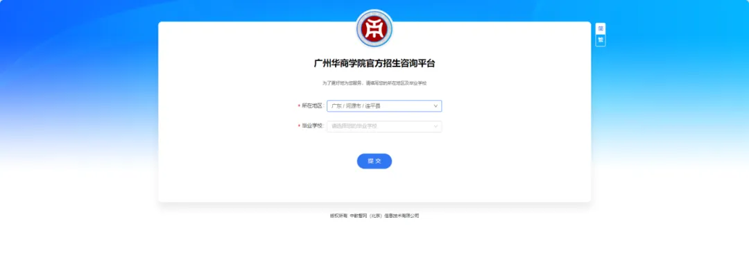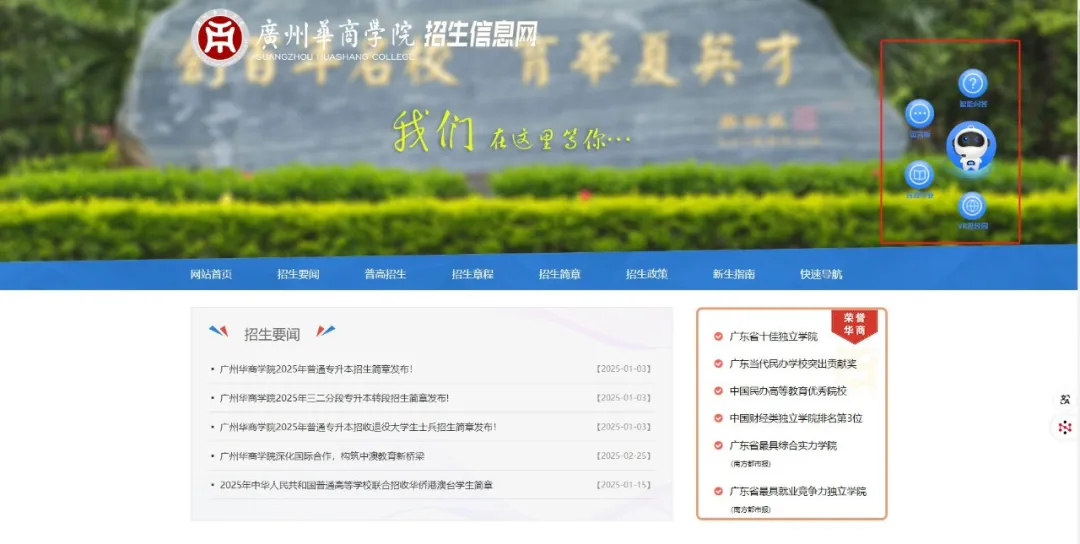 方式二:米兰·官方版在线入口招生信息网登录米兰·官方版在线入口招生信息网(网址:https://zs.gdhsc.edu.cn/),点击右侧“智能机器人小招”,在登录界面完善基础信息后即可在线咨询或留言。