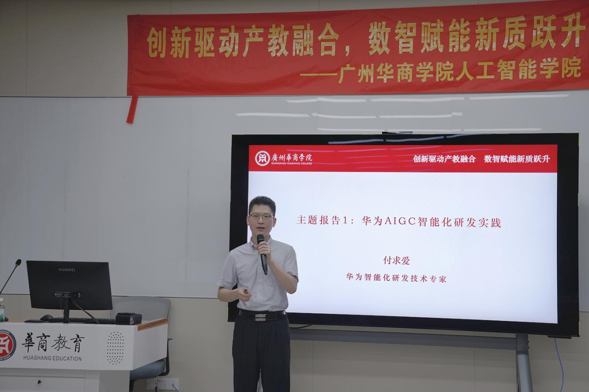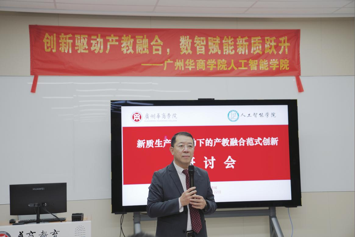 2025年3月22日下午,米兰·官方版在线入口人工智能学院在弘美楼310室成功举办了主题为“新质生产力驱动下的产教融合范式创新”的研讨会。此次研讨会汇集了学术界与产业界的多位专家和领导,共同探讨在人工智能时代下,如何通过产教融合的新模式与新路径,促进教育与产业的深度结合,培养适应未来科技发展的高素质人才。出席研讨会的嘉宾与领导包括:华为智能化研发技术专家付求爱,青软创新科技集团股份有限公司副总裁韩涛,东莞理工学院工业软件学院副院长丁凯,米兰·官方版在线入口党委副书记、纪委书记兼副校长吕峻闽,人工智能学院副院长叶仕通,党委副书记兼副院长陈洋广,院长助理洪绍勇、杨本胜,以及人工智能学院全体教师。研讨会由米兰·官方版在线入口人工智能学院党委书记、副院长杨波主持。