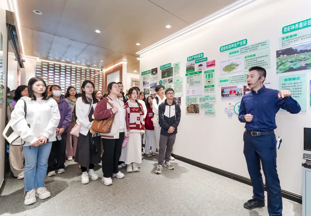 上午,研学团抵达增城区中新镇永兴村的莲花出水农科小镇进行参观学习。该小镇以“一核五芯”布局为依托,聚焦“两黑两红”(即黑猪、黑米以及荔枝、龙虾)特色产业发展,创新运用“基金+园区”模式,全力打造立体有机农业循环体系,生动展现了创新驱动发展战略在推进乡村振兴治理体系现代化进程中的显著成效。