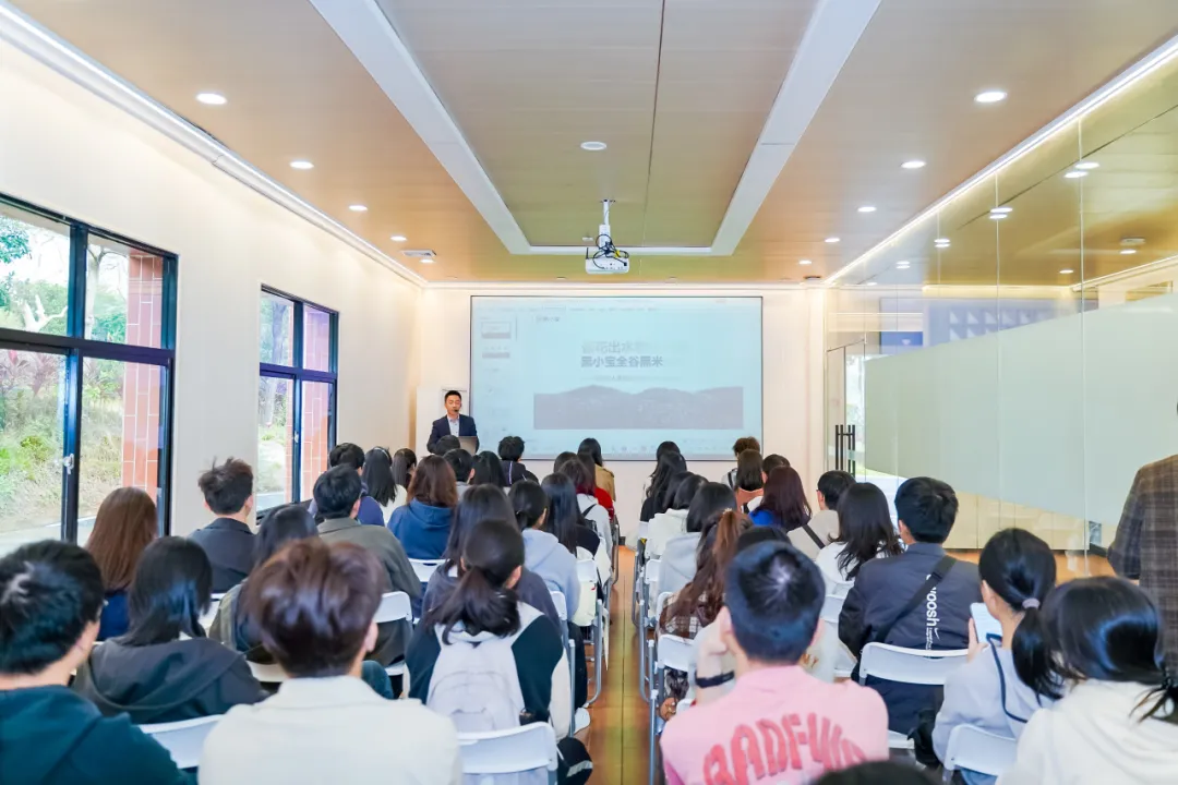 随后,在“乡村振兴产业实务经验分享”讲座上,广州乡村振兴控股集团文旅副总监李青青女士介绍了乌榄产业的多重价值,包括其在自然景观、传统饮食、高价值农业产品以及非物质文化遗产等方面的表现,强调了全产业链发展对乡村振兴的重要作用。她鼓励师生们把握时代脉搏,充分发挥专业技能与创新思维,积极投身乡村,在这片充满希望的田野上,实现个人梦想与乡村振兴的同频共振,绘就乡村繁荣发展的新画卷。