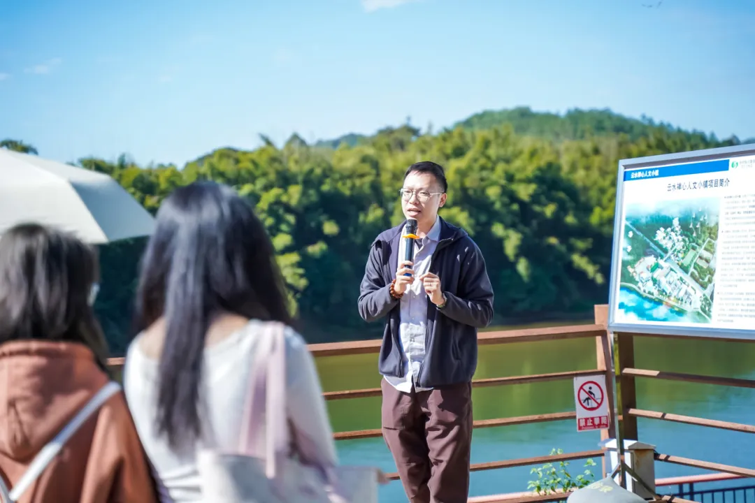 最后,研学团前往正果镇蒙花布村进行参观调研,高心亮书记、高新村长为研学团作“蒙花布村乡村运营”主题分享,讲述了村庄悠久的历史文化,村庄通过打造3A级景区村落、强化整村运营管理、发展乡村产业新业态等方式创建典型村的具体路径。随后,带领研学团成员观光万里碧道、正果拦河坝、碧水银滩、乌榄园等地,让研学团成员实地感受乡村的自然风光、生态环境和文化底蕴,进一步理解乡村振兴战略下的乡村发展新模式。