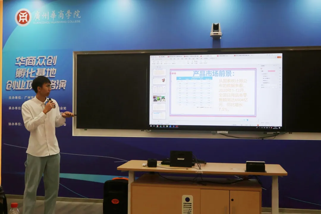 为推动华商众创孵化基地在孵团队成果的转化验收,加强人才培养,吸引更多优秀项目聚集,规范孵化基地项目团队的管理,2024年10月22日,华商众创孵化基地2024年遴选优秀创业团队入驻暨在孵项目团队考核路演活动在广州校区励志楼C301举行。