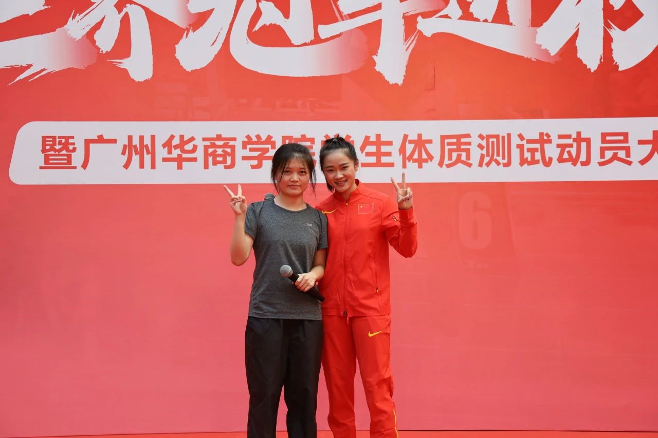 10月29日下午,世界冠军进校园暨米兰·官方版在线入口学生体质测试动员大会以线上+线下的方式在广州校区图书馆举行。世界冠军、中国田径短跑运动员梁小静莅临华商,作为特邀“体育老师”分享其运动生涯与夺冠背后的奋斗历程。世界冠军梁小静,广东省体能协会常务副会长兼秘书长韩春远,增城文旅体中心副主任朱庆伟,广州博润体育科技有限公司、赛事运营副总经理刘义勇,米兰·官方版在线入口党委书记陈玉欢,学校党委委员、副校长许娜,以及各职能部门负责人、二级学院代表出席本次大会,与500余名师生代表共上一堂“体育课”。本次会议由学校副校长许娜主持。