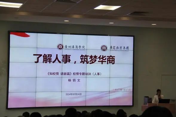 人事工作是学校管理的核心环节之一,对于新教职工来说,了解学校的人事政策和自身在人事体系中的发展路径至关重要。杨俏文副处长针对人事处的工作内容、教师职业晋升路径、福利保障政策以及规范行为的要求等方面开展了培训。她从人事处的组织架构和主要工作入手,详细介绍了教师培养培训体系,涵盖新教师入职培训、青年教师培训、骨干教师重点培养等不同层次,旨在帮助教师快速融入,实现职业发展。她还介绍了教职工的晋升之路、学校的福利保障政策,旨在提升教师的幸福感。此外,她还强调,教职工要认真学习《中华人民共和国教师法》《新时代高校教师职业行为十项准则》等法律法规,遵守学校各项规章制度,规范自身行为,做优秀华商人。