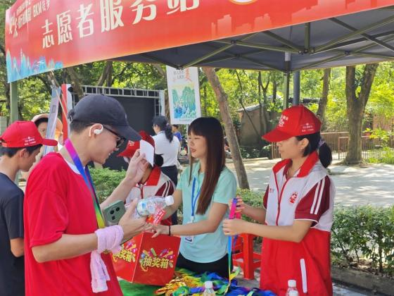为庆祝新中国成立75周年,营造家国同心的文化氛围,引领华商青年弘扬爱国主义情怀和志愿服务精神,2024年10月1日,在我校党委的关心支持下,学校团委组织20名青年志愿者参与协助四会市“贺国庆·悦行越精彩”徒步活动。
