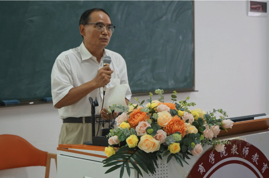 小学教育系专业负责人李志厚教授回顾了自己的教育生涯,并对教师的角色进行了深入探讨。李教授认为,教师应当是学生的指路人、帮助者、挑战者和激励者,他感慨教育是一项令人难忘的事业。同时,李教授谈到教育问题的探索永无止境,期望新生们在四年的大学生活中能够学有所得,思有所悟,为有所成。
