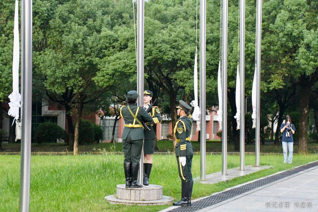 惠风和煦,国旗护卫队步伐铿锵有力、整齐划一,全体师生面向国旗,鲜艳的五星红旗随着灿烂的晨光,在庄严的国歌声中冉冉升起,2024年新生开学典礼暨军训动员大会正式拉开帷幕。