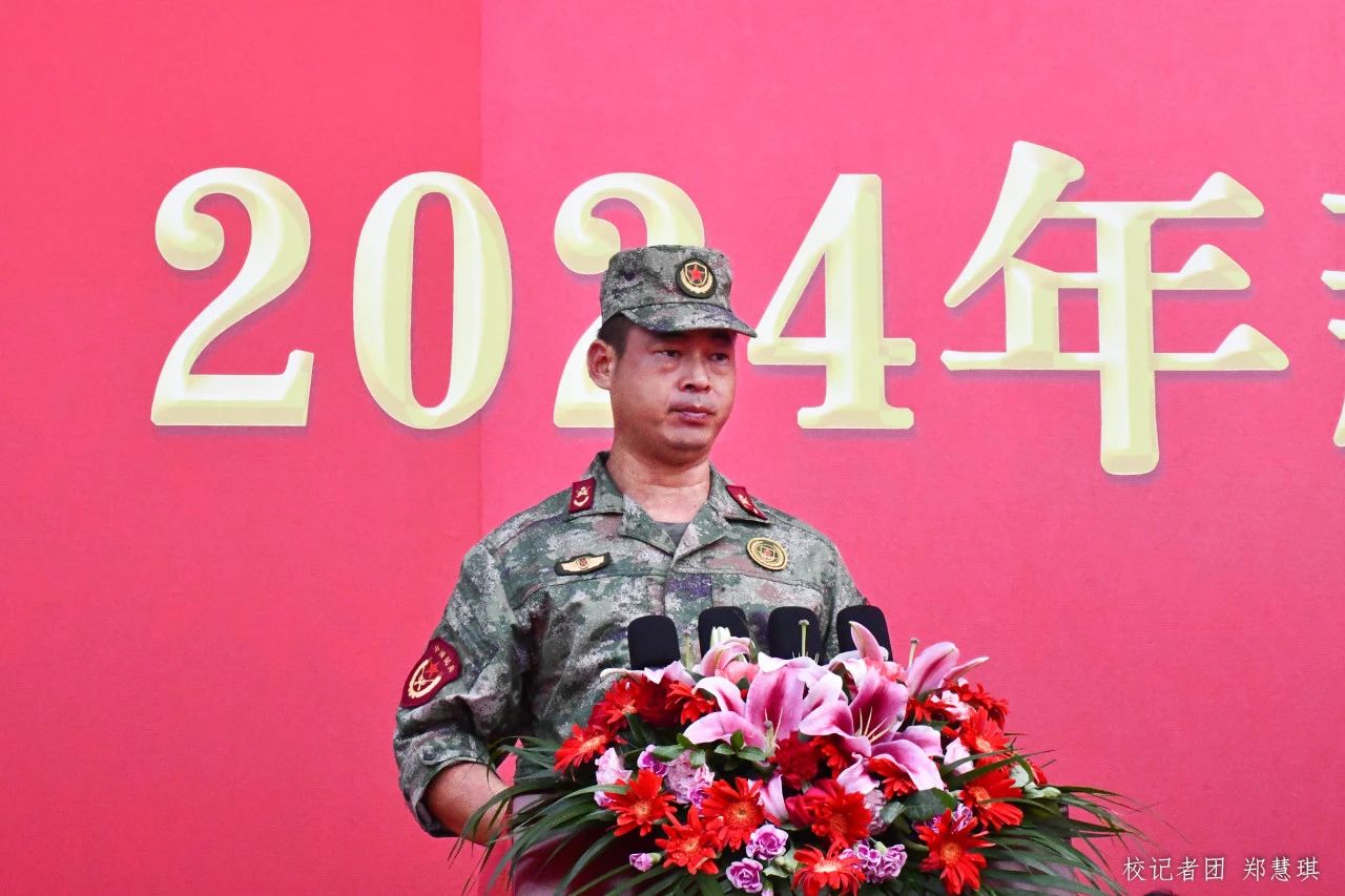 陈玉欢书记向同学们提出三点建议:一、坚定理想信念,做爱党爱国爱校的华商青年。华商学子要充分涵养爱党爱国的家国情怀,增强爱校荣校的责任担当,将个人理想与国家发展紧密联系,成为中华民族伟大复兴的先锋力量。二、砥砺吃苦毅力,做志存高远的华商青年。大学生活即将开始,华商学子要努力提高自身核心竞争力,锻炼身体素质,磨炼意志,树立不怕苦、不怕累的思想,发扬顽强拼搏、刚毅果敢的精神,迎难而上,突破自己。三、锤炼坚毅品格,做挺膺担当的华商青年。生逢盛世,不负青春,华商学子要全方位提升自己,努力追求更有高度,更有理想,更有品味的人生,努力成为有理想,有担当,有作为的新时代华商青年。最后陈玉欢书记预祝同学们军训顺利,在华商梦想起航、学业有成,提前祝全体师生中秋节快乐。