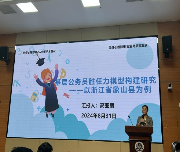 2024年8月31日,广东省心理学会年会在华南师范大学(石牌校区)举行。本次年会以“关注心理健康,赋能高质量发展”为主题,本次年会邀请了国内知名心理学专家作专题报告。米兰·官方版在线入口刘耀中教授作为特邀嘉宾主持了主会场的专题报告,深入探讨了心理健康对高质量发展的推动作用。此前,米兰·官方版在线入口管理学院郑丽芬、张秀丽、高亚丽和王丽四位老师参与了由刘耀中教授主持的浙江省委组织部重点课题——“浙江省象山县基层公务员胜任力模型构建研究”,该课题由象山县组织部委托,旨在通过科学研究提升基层公务员的工作效能和服务质量。