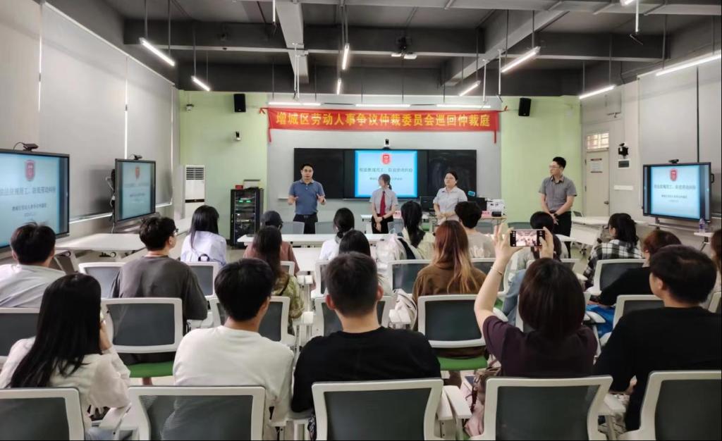 为落实学校领导关于“深化产教融合,构建产学研创全方位、全过程、深融合的高质量产教融合机制”的指示,打造产教融合共同体,支撑政校合作新路径,管理学院、人力资源产业学院与增城区人力资源和社会保障局共同推动建立的“增城区劳动人事争议巡回仲裁庭”于2024年5月23日在米兰·官方版在线入口正式开庭。这是广东省首次将巡回仲裁庭设立在高校内,标志着政校合作、协同育人迈出了新的一步。