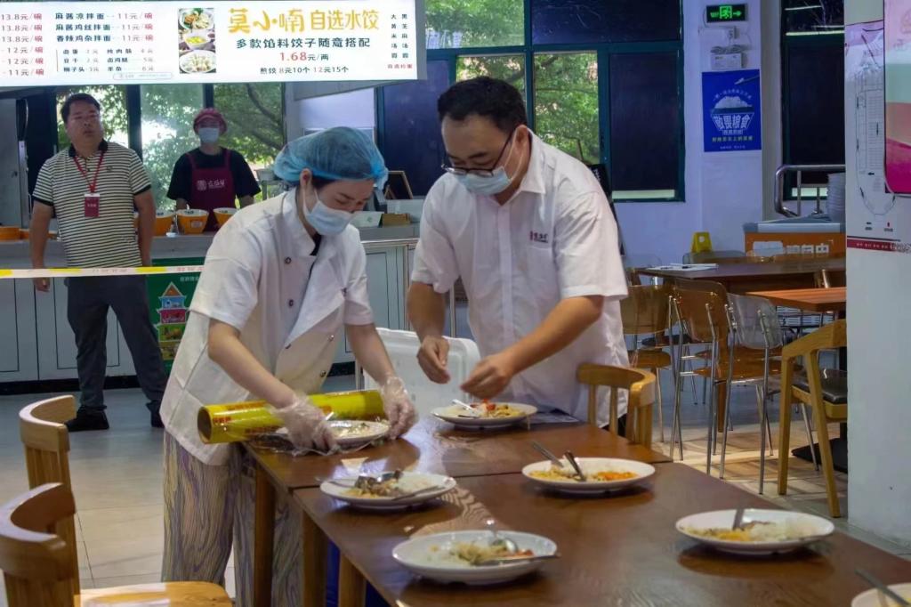 后勤保卫处联合校企合作中心对学校各食堂的环境卫生、设施设备及安全管理制度等方面进行检查,重点检查食堂“日管控、周排查、月调度”工作记录及食品原材料的货源查验、贮存、加工制作、留样等情况。通过不定时检查,确保校园食品安全问题得到及时发现与有效处理。