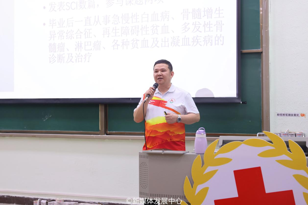 莅临本次活动的嘉宾包括:广州市增城区地贫协会关天航会长、广东省医疗协会血液病分会委员、广东省感染性疾病精准治疗专委员朱朝辉教授,增城区地中海贫血志愿者协会与前海人寿广州总院的医护人员,以及我校团委专职团干部。