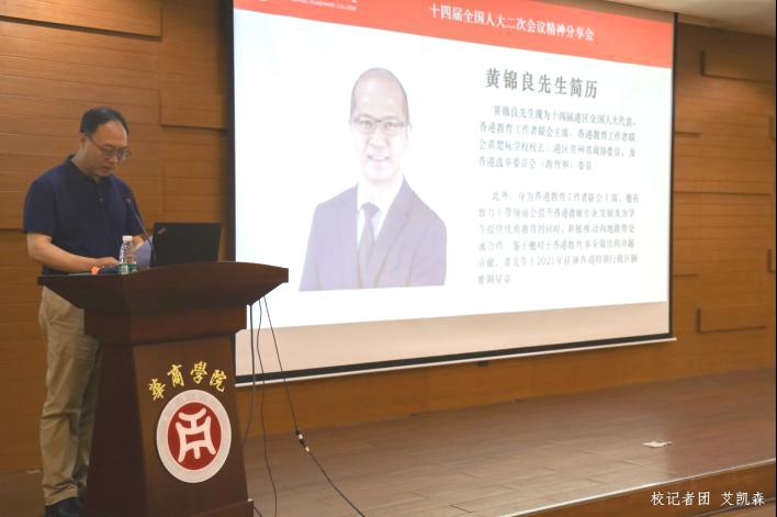 王文忠处长致辞。他热烈欢迎黄先生为我校师生解读政府工作报告中提出的政策方向和目标,把握国家发展的总体趋势,帮助师生更加全面、深入地了解国家大事和地方情况。