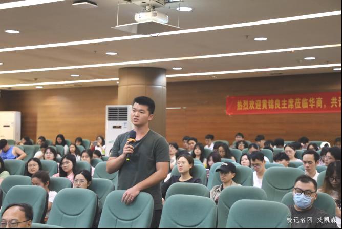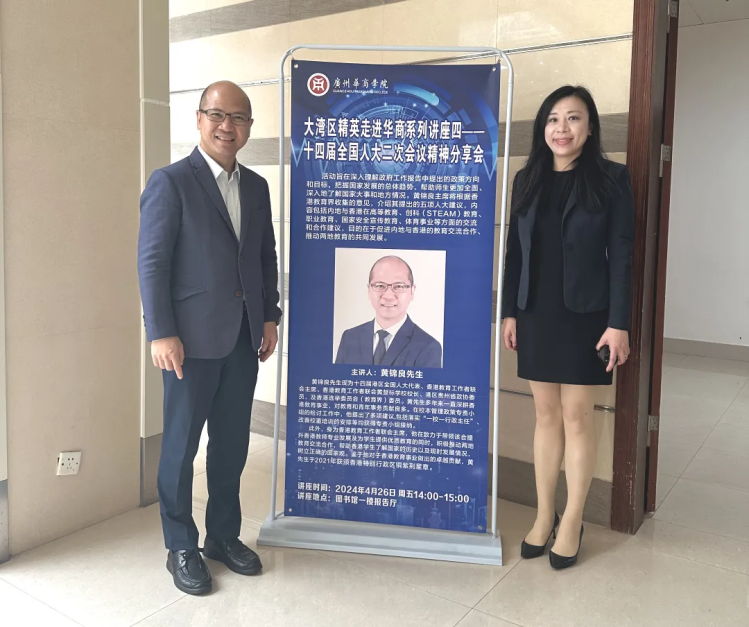 当天下午,我校“大湾区精英走进华商”系列讲座在广州校区图书馆报告厅举行,黄锦良先生应邀为我校师生作专题讲座。我校人事处处长彭强、国际交流与合作处处长暨港澳台办主任王文忠出席本次讲座,各院系系主任、学工、辅导员,各专业教师代表及学生代表共300余人参加了本次讲座。