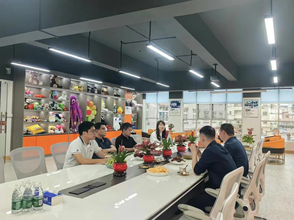 随后,学院领导一行来到广东幸福小屋玩具有限公司。在走访过程中,学院领导们详细了解了玩具制造、玩具销售、母婴用品制造以及工艺美术品制造等多元化业务的运营情况,并对企业在产品设计和创新方面的成果给予高度评价。双方就如何结合学院教育资源与企业实际需求,共同培养具有创新精神和实践能力的设计人才进行了深入探讨。