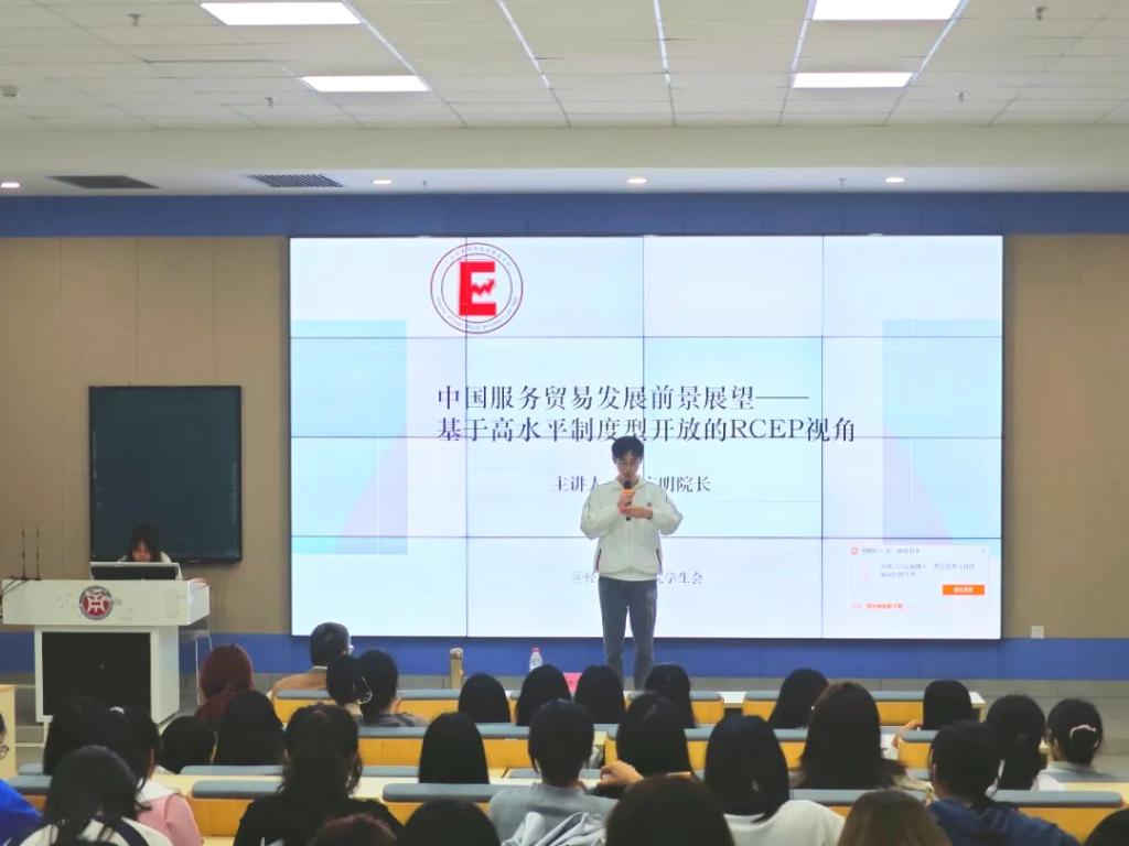 为帮助同学们深入了解中国服务贸易的现状及发展前景,认识RCEP签署所带来的影响,学习高水平制度型开放的重要性,提升专业素养,增强核心竞争力。经济贸易学院院长李广明教授特举办“中国服务贸易发展前景展望——基于高水平制度型开放的RCEP视角”主题讲座,深入剖析中国服务贸易的发展现状、机遇以及未来可能面临的挑战。本次讲座于2024年3月25日15:50在肇庆校区8号楼109举行。
