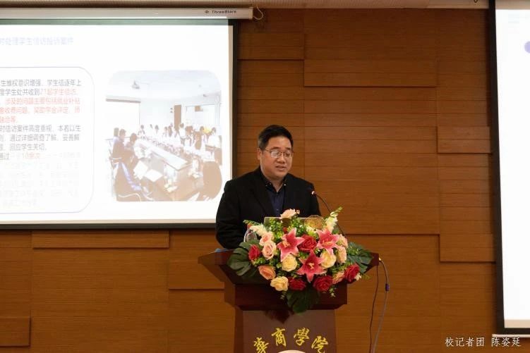 执行校长郭银华教授作大会总结讲话。首先,他对各单位在2023年的辛苦付出和工作成效表达了深深的敬意和诚挚的感谢。他强调,第一,务必要全力以赴做好学校合格评估工作;第二,要认真做好法治测评相关工作,这是当下工作的重中之重;第三,期末考试即将到来,在这个关键时刻,务必严守各项标准流程,把控好各个环节,确保期末考试顺利开展;第四,要协力维护校园安全稳定,建设平安校园。最后,他向全体教职工致以美好的新年祝愿。