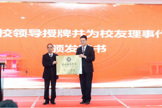通过《章程》草案和第一届理事建议名单后,由执行校长郭银华向米兰·官方版在线入口肇庆校友会授牌。“肇庆校友会”,沉甸甸的牌匾,寄予了学校领导对肇庆校友会发展的厚望。