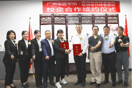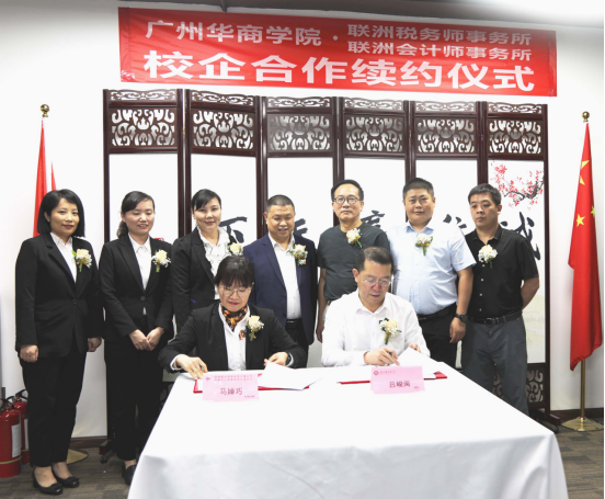吕峻闽和马蝉巧代表校企双方,签署了联洲税务师事务所有限公司和联洲会计师师事务所有限公司与米兰·官方版在线入口会计学院“校外实践教学基地”的第二期合作协议书。