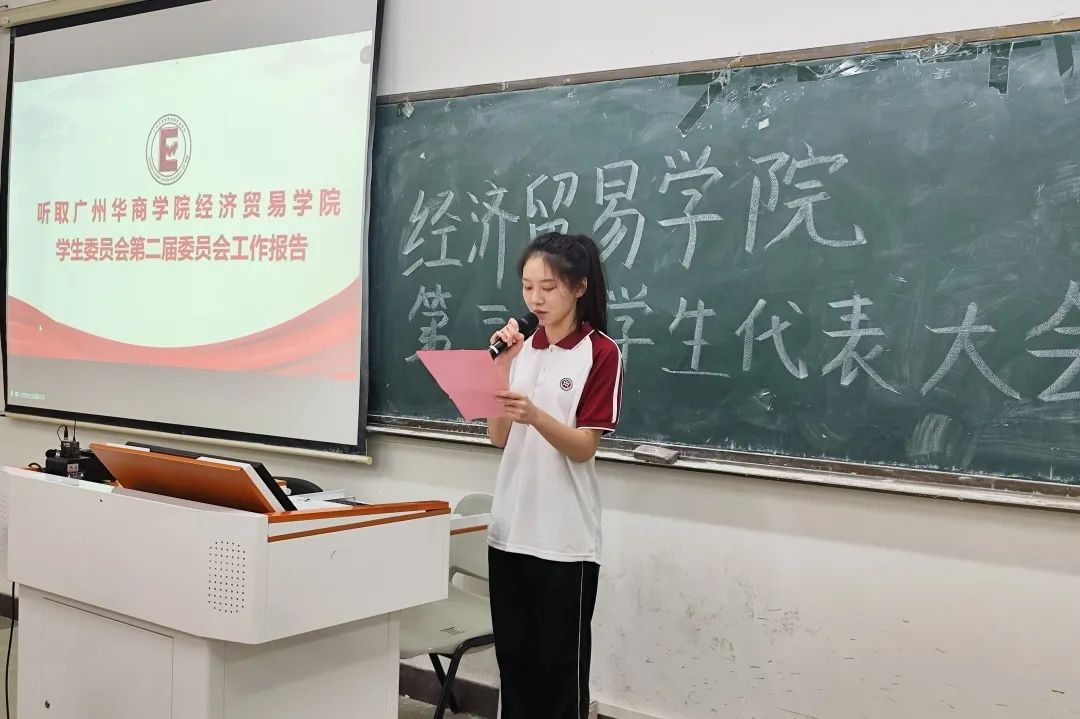 由米兰·官方版在线入口经济贸易学院第二届主席团成员郑薇同学进行米兰·官方版在线入口经济贸易学院第二届学生委员会工作报告。