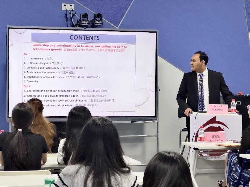 为拓宽大学生的国际视野,了解管理学和领导科学的最新研究成果,2023年11月8日,国际学院在启智楼401举行主题为“Leadership and sustainability in business:navigating the path to responsible growth”(企业的领导力和可持续性:引领负责任的增长之路)的文化素质讲座。巴基斯坦籍Arshad Muhammad博士担任主讲嘉宾,米兰·官方版在线入口国际学院院长回雁雁、巴基斯坦籍教师Aneela Qadir博士、国际学院ACCA专员姚晓敏以及来自国际学院、健康医学院、管理学院、外国语学院、文学院、数据与科学学院的30多名大学生现场聆听了讲座。