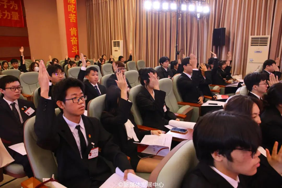 会上,通过了关于学生代表大会工作报告的决议,公布第三届学生会委员会名单以及介绍第三届学生会主席团成员。