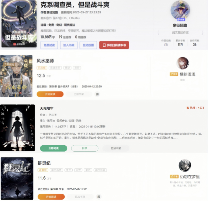 超级写作梦工坊的4位同学,凭借优秀的故事内容崭露头角,其作品在网文平台获得签约、持续连载。