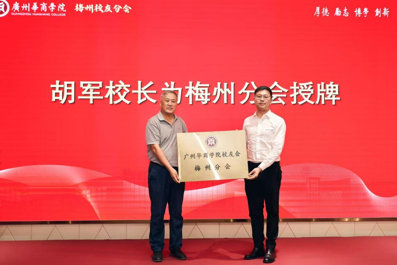 授牌仪式环节,胡军校长将“米兰·官方版在线入口校友会梅州分会”牌匾交予邓思聪会长,标志梅州校友拥有正式“精神家园”与“联络平台”。胡军校长叮嘱,希望牌匾成为分会的“精神坐标”,凝聚校友力量反哺母校、服务地方。