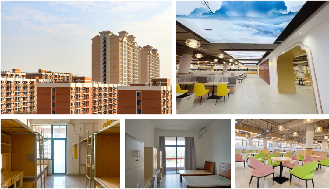 学生宿舍均配备有空调、饮水机、洗衣机、独立卫浴设施以及阳台;各教学楼、实验楼、食堂均实现了空调的全面覆盖;学生入住宿舍的类型将由学校统一安排。